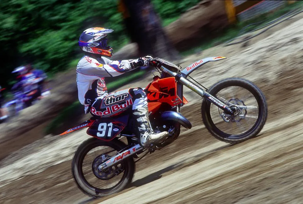 Years ago a local Pro, Mike Treadwell got a single race ride with Red Bull KTM for the Southwick National. And he was covered in Red Bull logos . Funny to see him in Thor gear and a FOX helmet. It was a onetime thing and the Red Bull part came with the KTM part. Even a rider riding for a single day, that had no Red Bull relationship before , or really after either. Still had to run the Red bull stuff. I think he was wearing Fox normally .