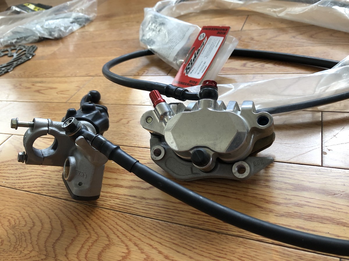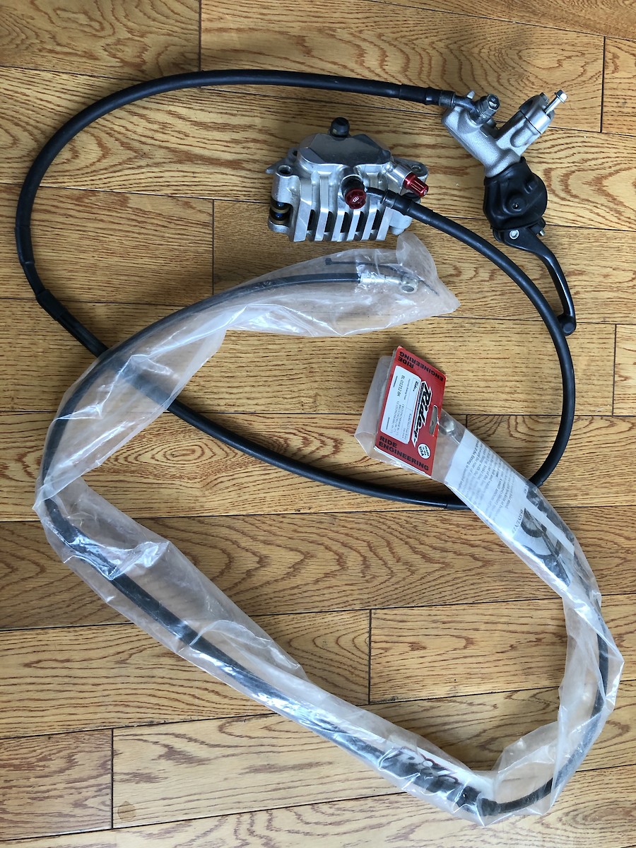 8/9/2019 10:07am 2018 CRF450R OE front brake master cylinder with Motostuff Works Edition front caliper. I believe it fits multiple models and years. Check motostuff.com Good condition. Pads are about 50% Includes brand new Ride Engineering steel braided front brake line ASV memlon front brake lever