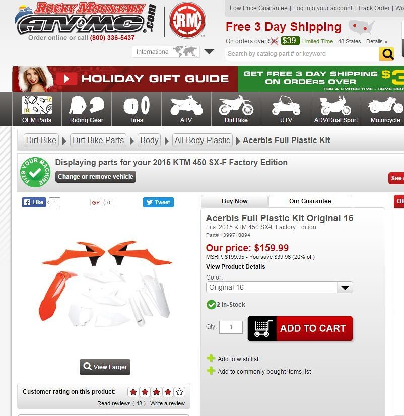 7/13/2015 9:24am I know Bike bandit has oem parts online. They are about the only place I've found online. http://www.bikebandit.com/oem-parts/2015-ktm-450-sx-f-factory-edition/o…