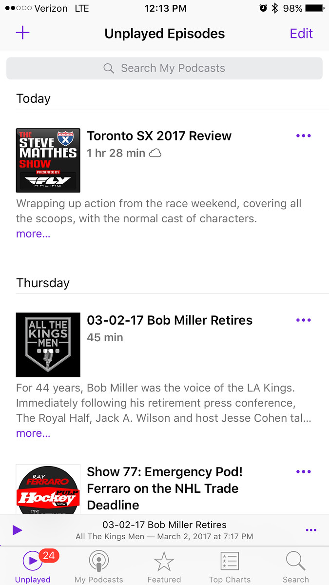 3/6/2017 1:06pm No problem. Just search Steve Matthes and it should pull up all the pods he does.