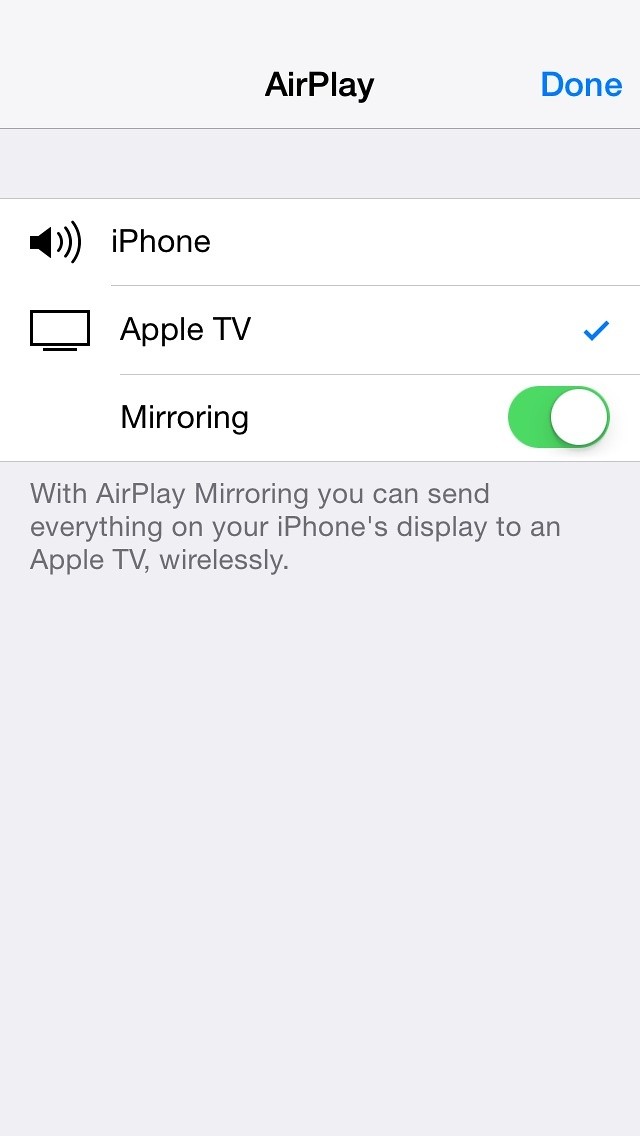 5/24/2014 9:04am You absolutely can stream it to Apple TV. Ok from the home screen drag the bottom up like this.