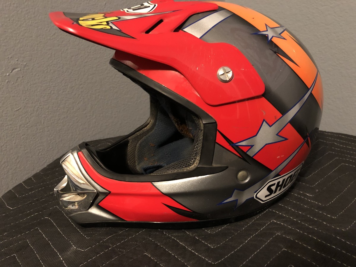 1/6/2022 7:55am selling the classic TP spiral design helmet. helmet is size xl. the padding on the inside aint the best but the outside is in great condition for the age. small nicks here and thre but nothing major. im asking 399 shipped' im open to reasonable offers TEXT 619 867 3854