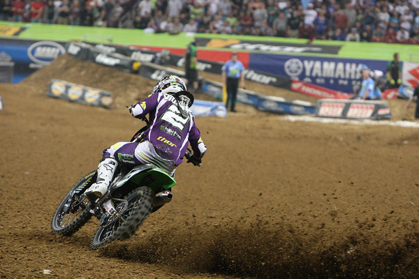 Wilson’s Monster Energy Pro Circuit Kawasaki teammate, Christophe Pourcel had clinched the 2010 Lites East title last weekend in Houston, and ran a rather leisurely main event…though we’re not sure that was his intention. He got high-centered on a Tuff Block on the first lap, and struggled to get unstuck. He was already a lap down on lap two, and was never a factor, finishing in 20th spot, after dropping out on lap five.