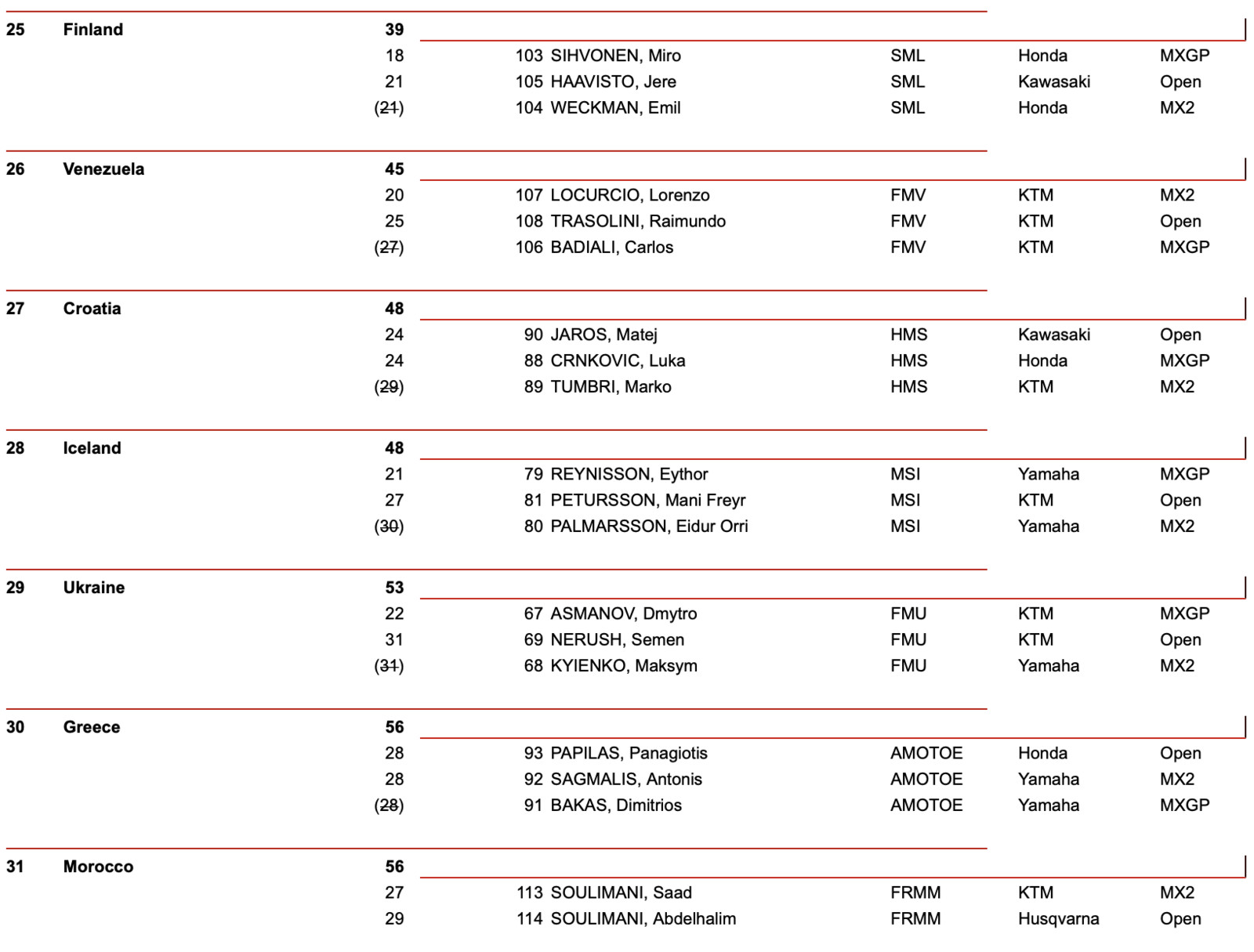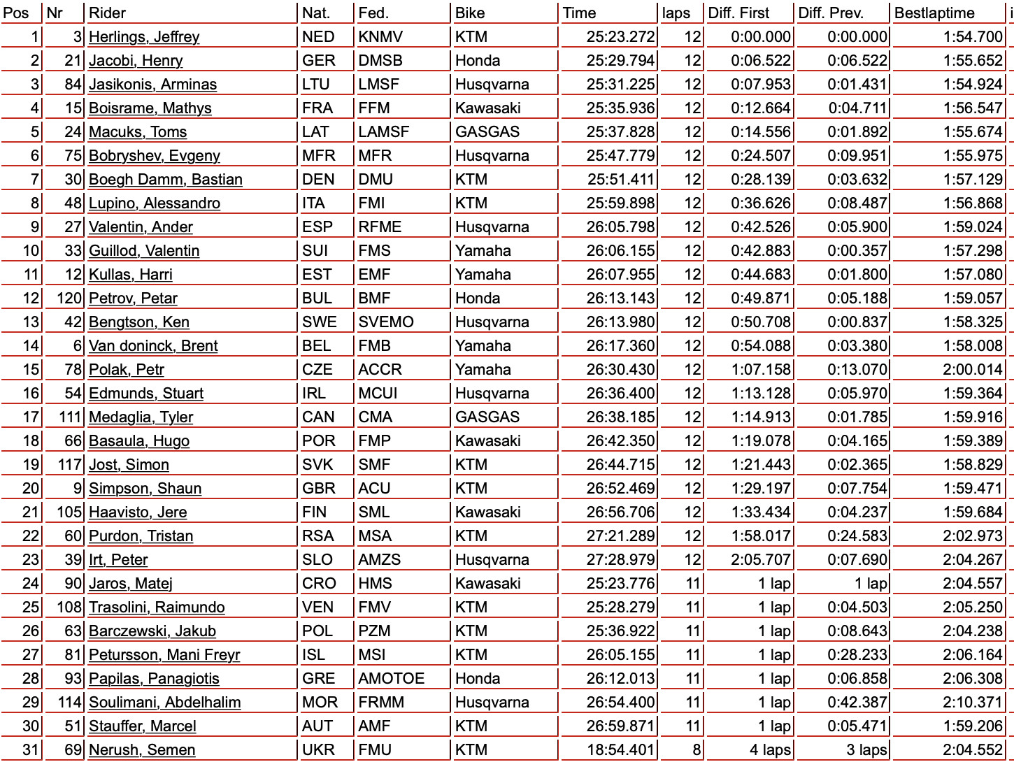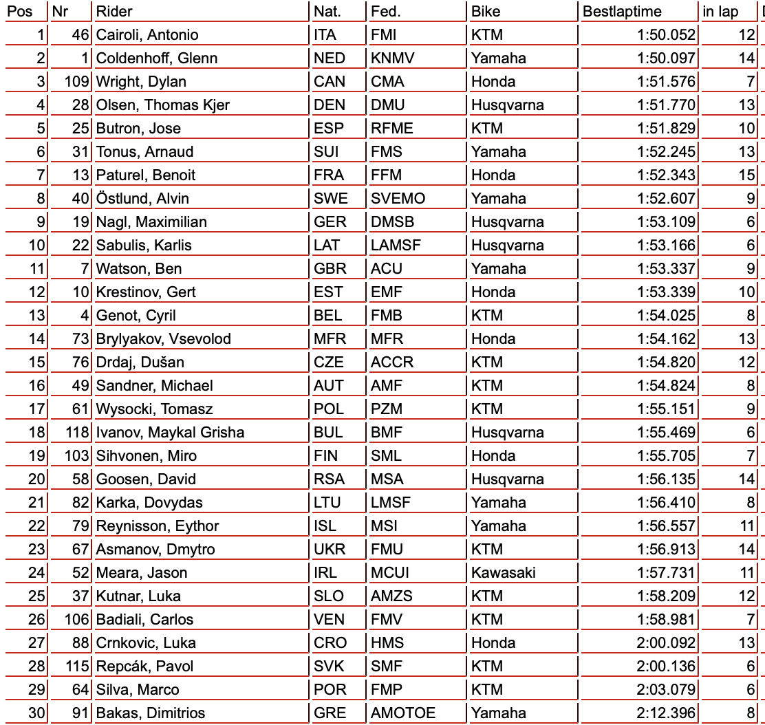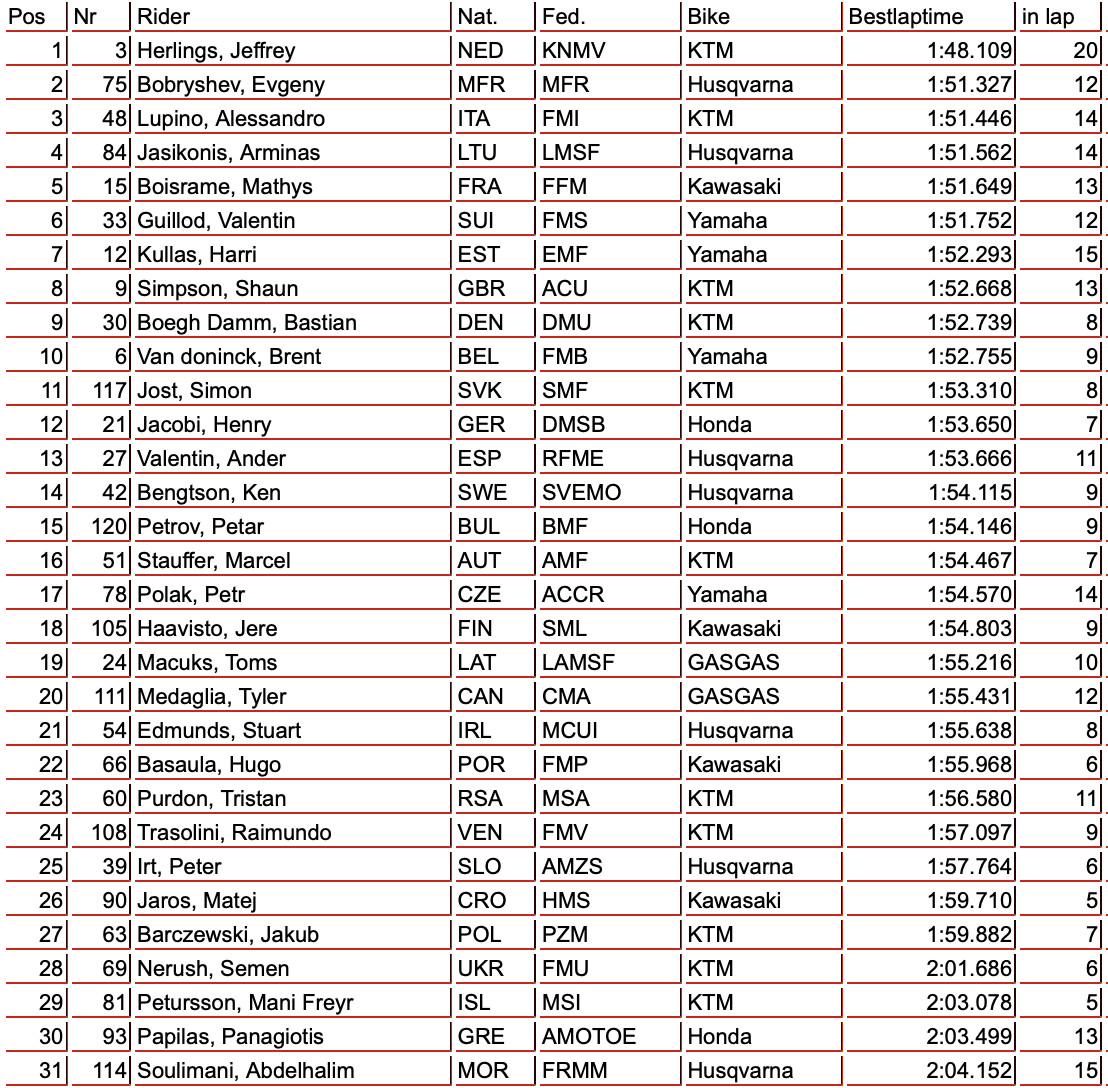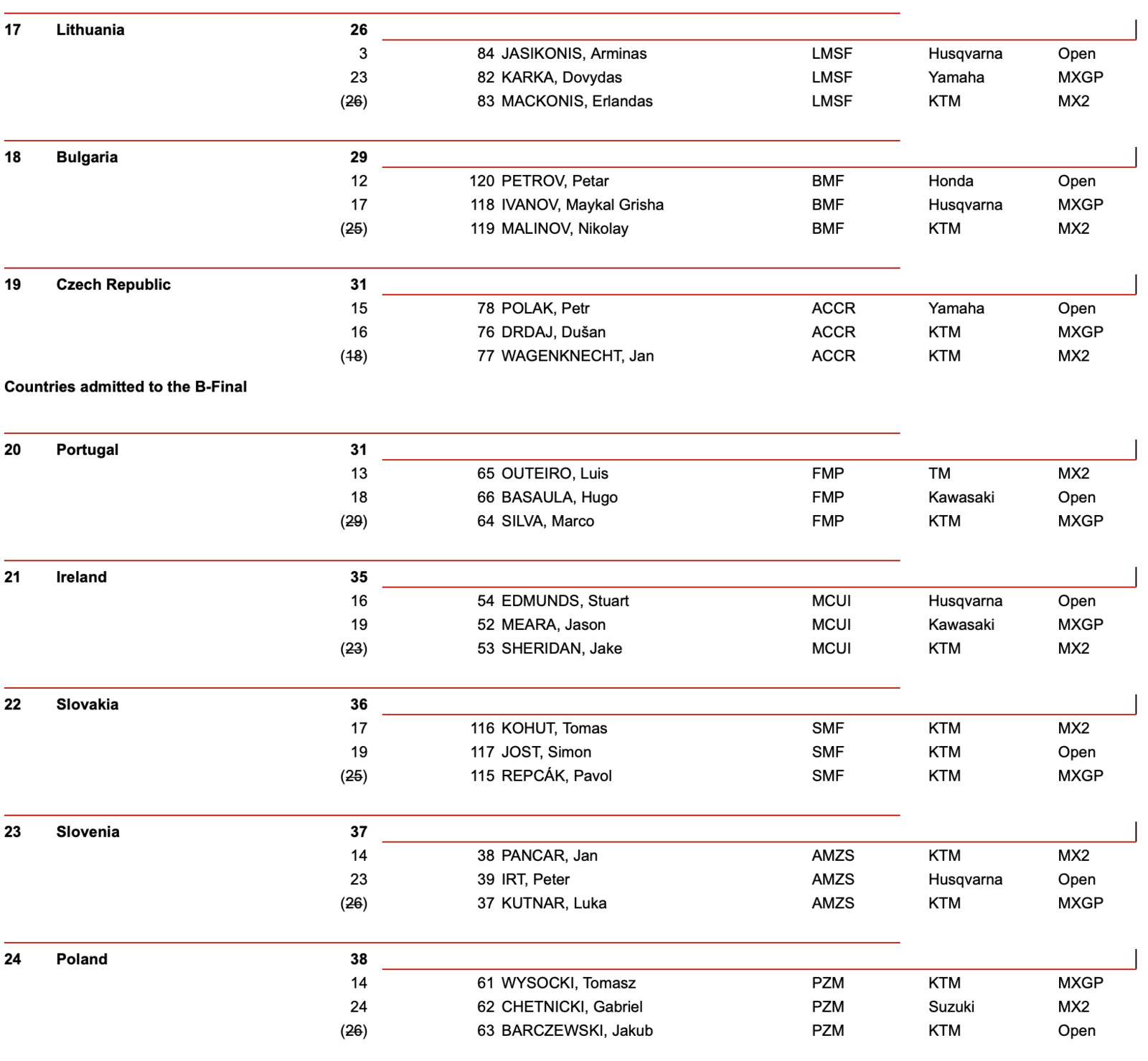 Free practice and heat race results from this weekend's Motocross of Nations.