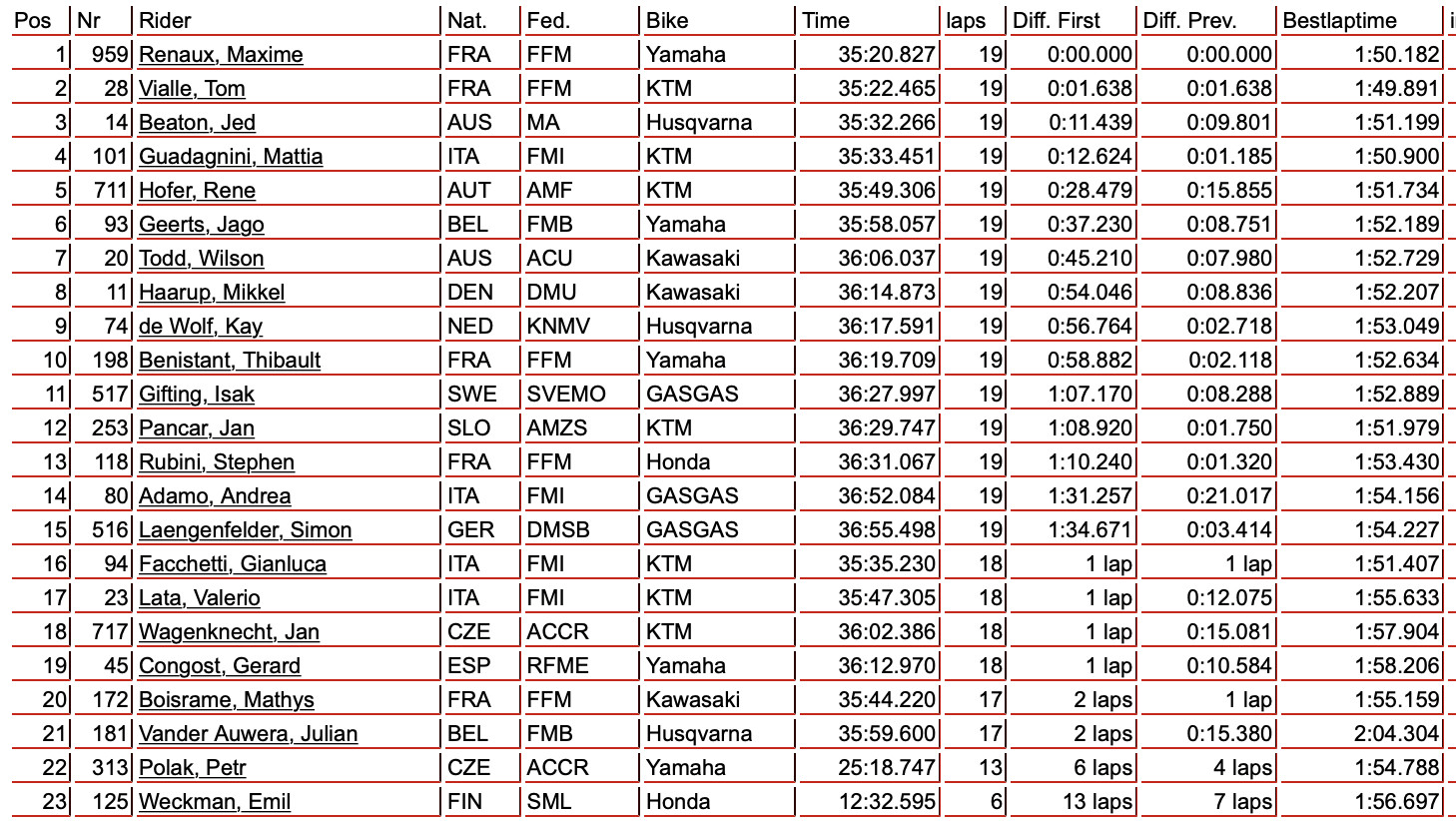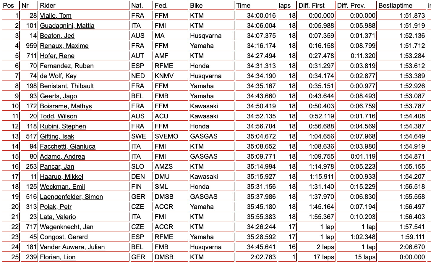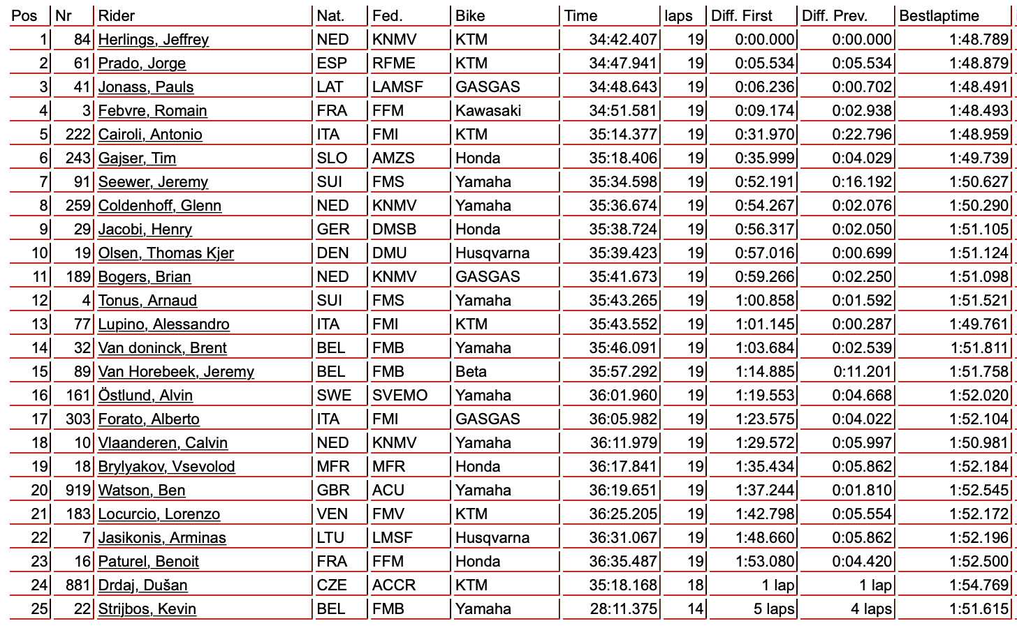 Results Sheet: 2021 MXGP of Turkey