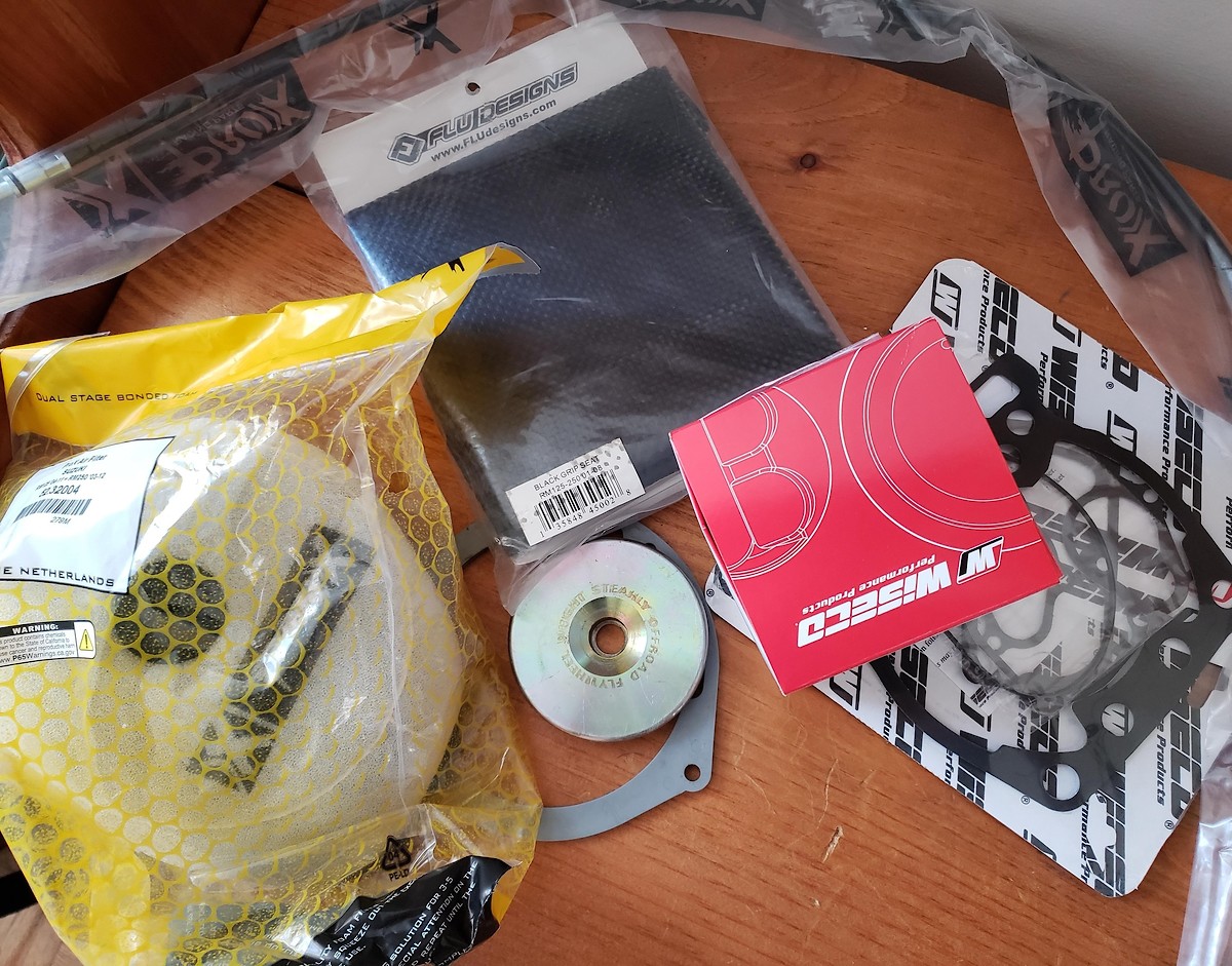 Part 1: I will be tearing it down to the frame to clean, grease, polish, inspect, etc. I already ordered a top end and gasket kit, a new air filter and clutch cable. My goal for part one is to make this 2004 look as clean, and stock, as possible. I will get new white fork guards, brake line guides, silver Renthal bars with a classy black bar pad, OEM pink/ clear carb vent hoses and a new stock style set of sprockets. Only real "updates" to the bike will be a gold chain, a stock looking all black gripper seat cover, plain white backgrounds with black numbers and the Renthal bars. I will not even be putting a sticker on the bike, unless its an OEM replacement... just trying to make it look showroom, for this year.