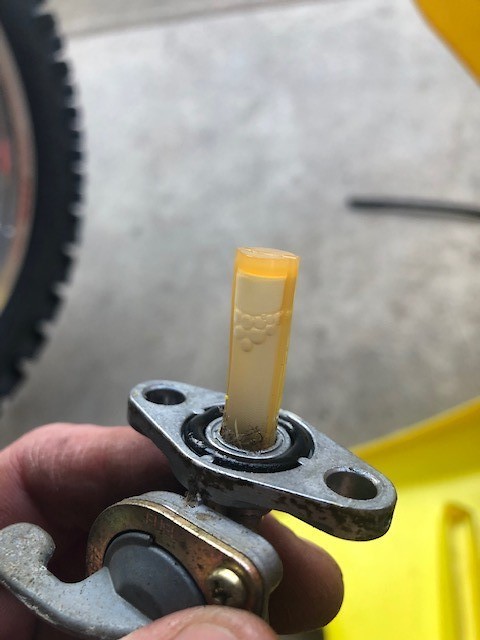 To my delight, the air filter looked fresh as can be. Petcock screen had a bit of trash on it, but nothing too crazy. The gas that was poured out of the tank was old though, just really showing how little this bike was rode. I got the fluids drained, and will be replacing the top end, inspecting crank, and installing hour meter tomorrow. It's driving me nuts how flawless this bike is, but the sprocket has the outside wear from something being messed up in the guide. I'll figure that out before riding it.